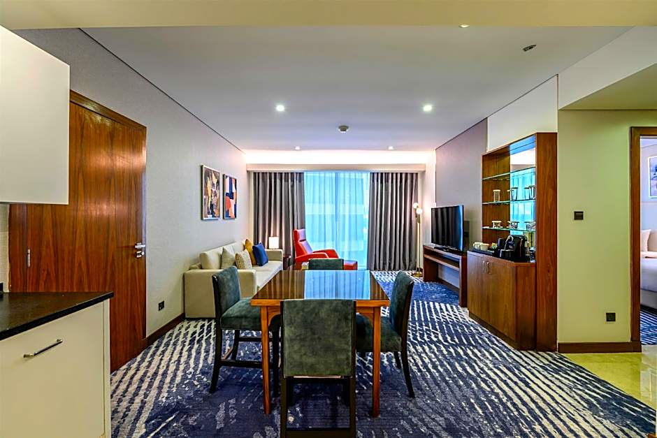 Offering free toiletries and bathrobes, this suite includes a private bathroom with a bath, a shower and a bidet. A kitchenette fitted with a refrigerator, a dishwasher and a microwave is available for cooking and storing food. The spacious air-conditioned suite offers a flat-screen TV, a tea and coffee maker, a seating area and a dining area. The unit has 1 bed.